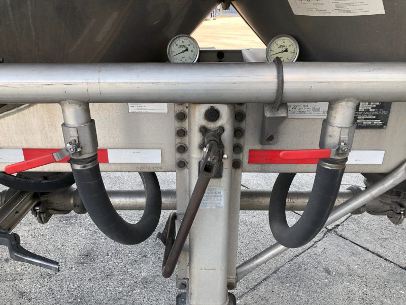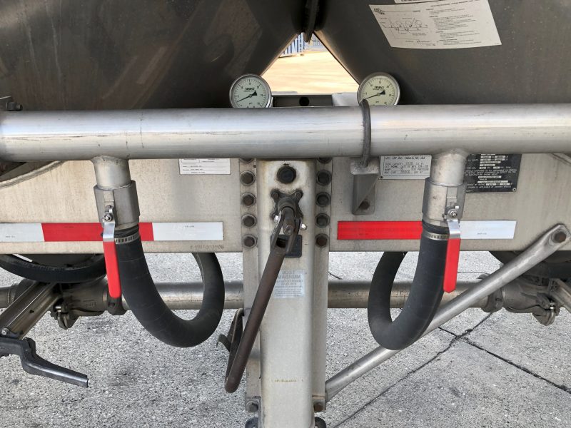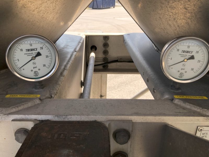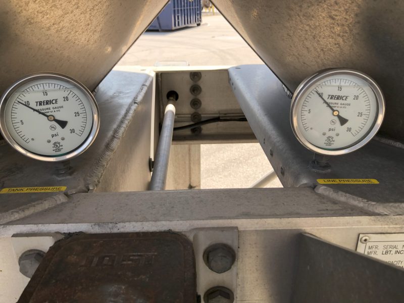Once the tank has built up pressure go back to each hopper to empty the remaining product. I usually go front to back since there isn’t much left in the hoppers. If there is any left in the hoppers it’s usually in the middle two hoppers. The way to tell they are empty is if the pressure starts to drop and the hoppers make a unique horn sound.