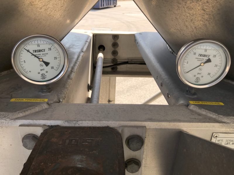 The tank pressure gauge measures the internal pressure within the trailer. This pressure should remain stable throughout the loading process, primarily influenced by whether the line pressure is building or losing pressure.